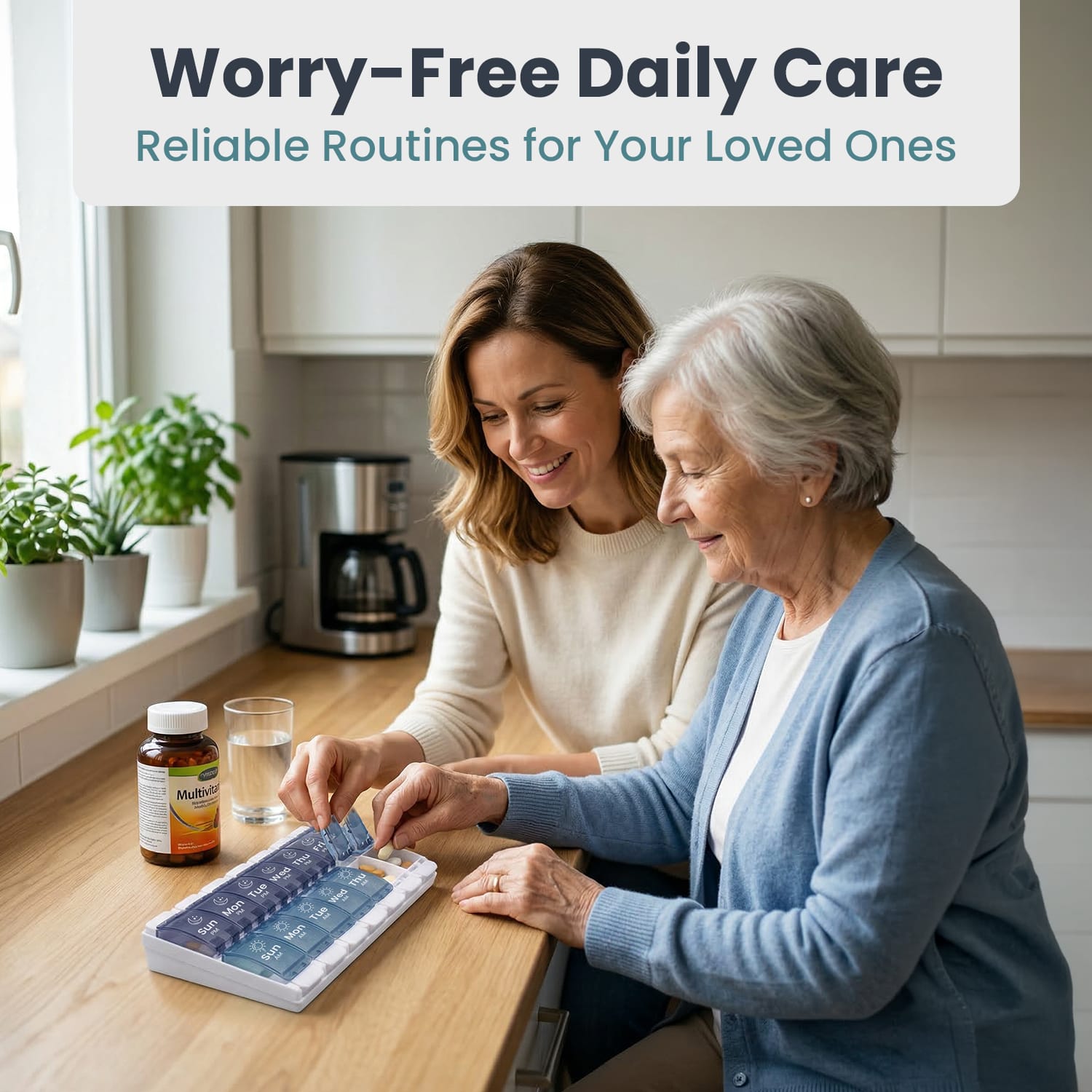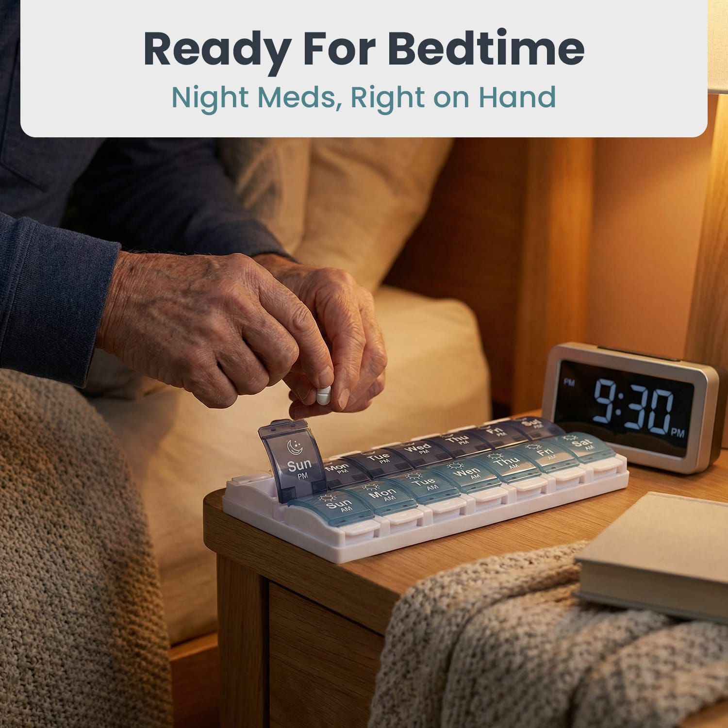 It is a great fit for seniors, caregivers, busy adults, and anyone who wants a simple way to manage morning and evening pills.