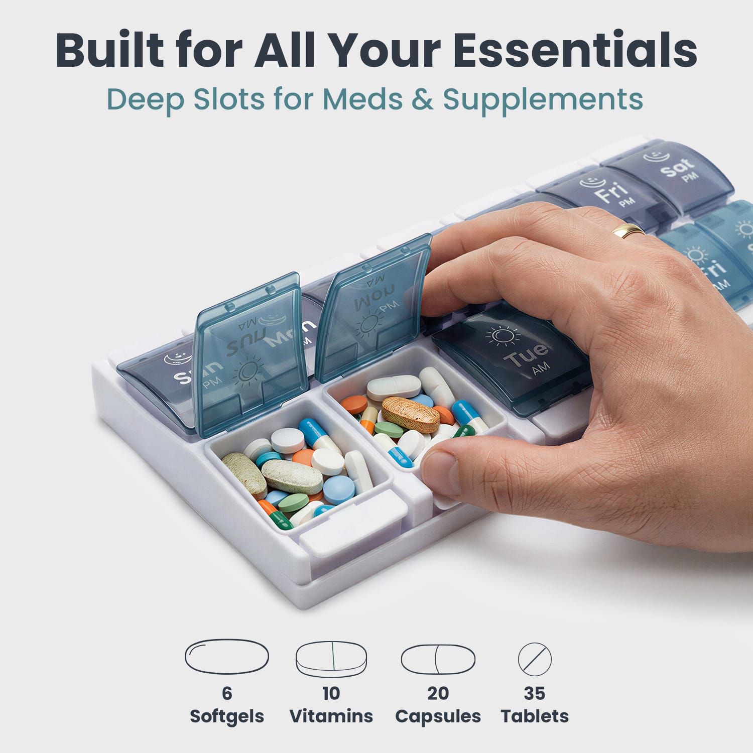 Yes, the extra large compartments are designed to hold multiple tablets, capsules, vitamins, and daily supplements with less crowding.