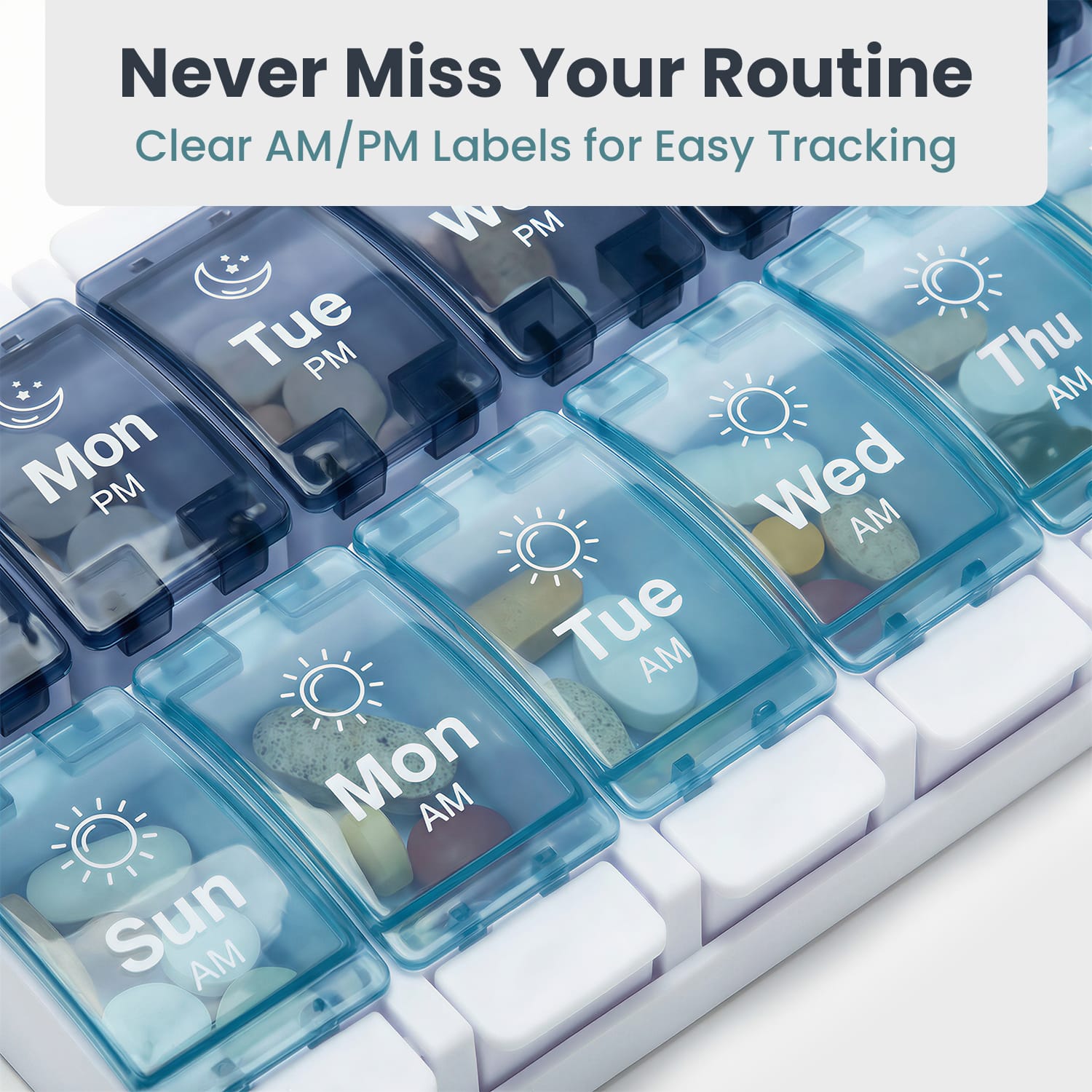 Yes, this weekly pill organizer is made for AM and PM use, with separate compartments for morning and evening doses across all 7 days.