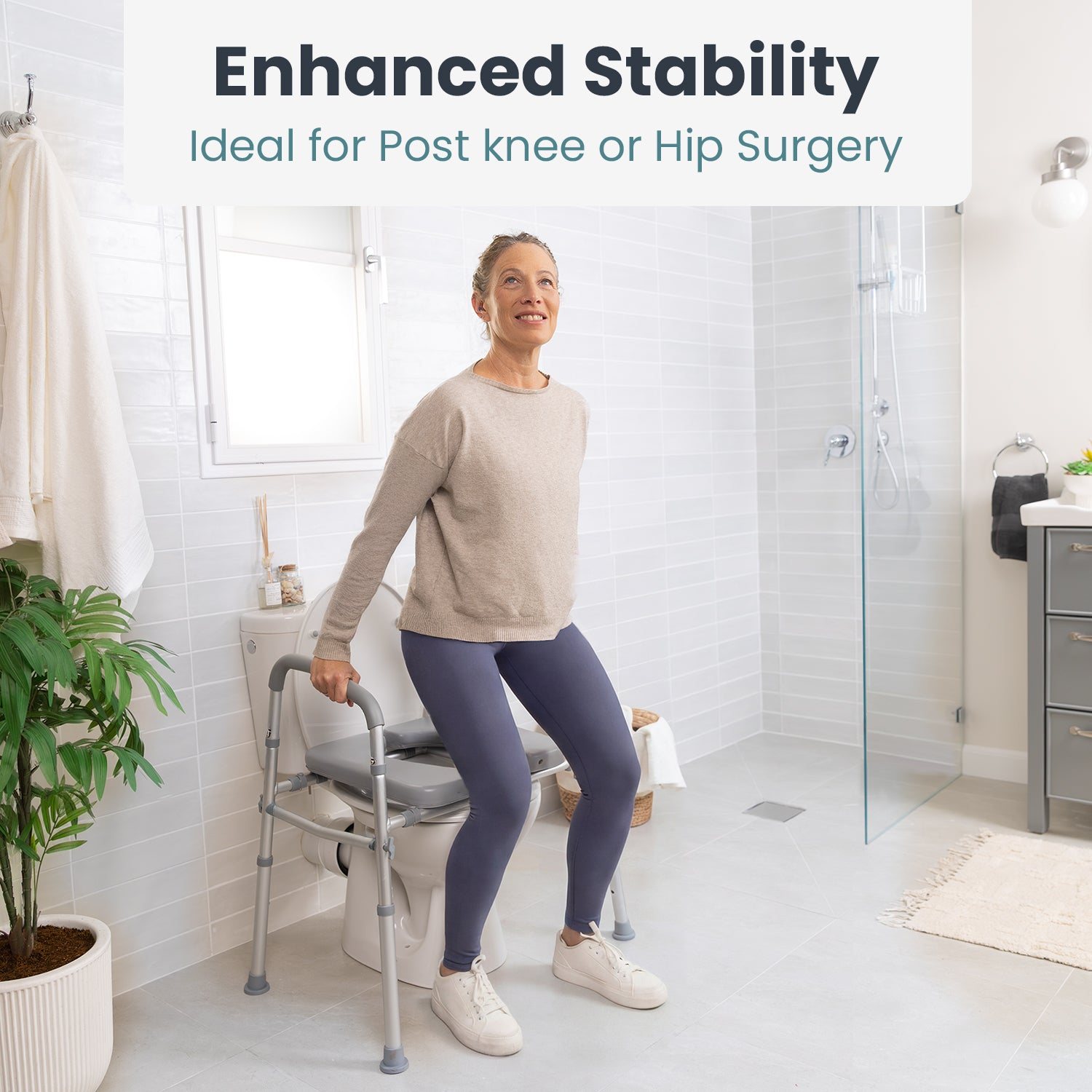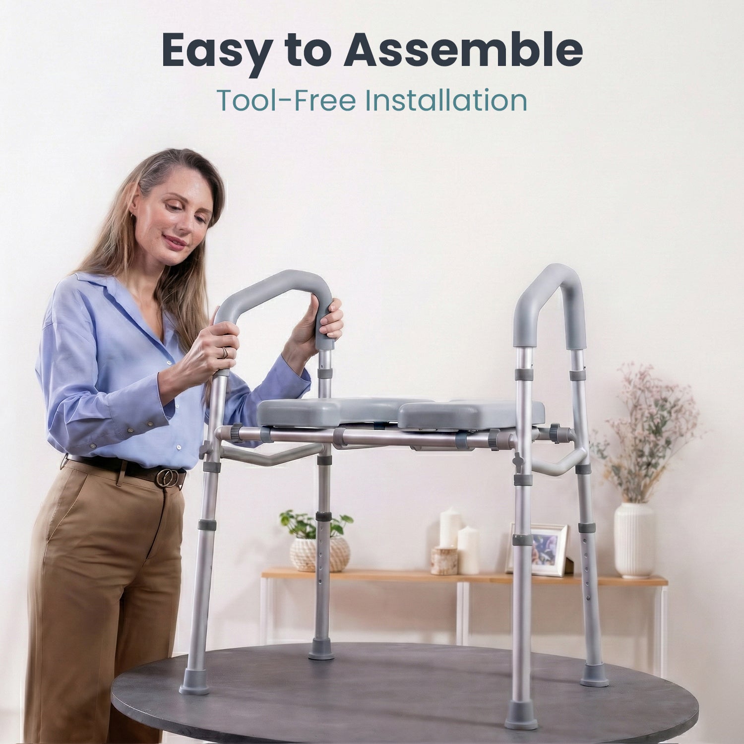The seat is very stable, featuring a sturdy aluminum frame and non-slip feet to prevent slips.