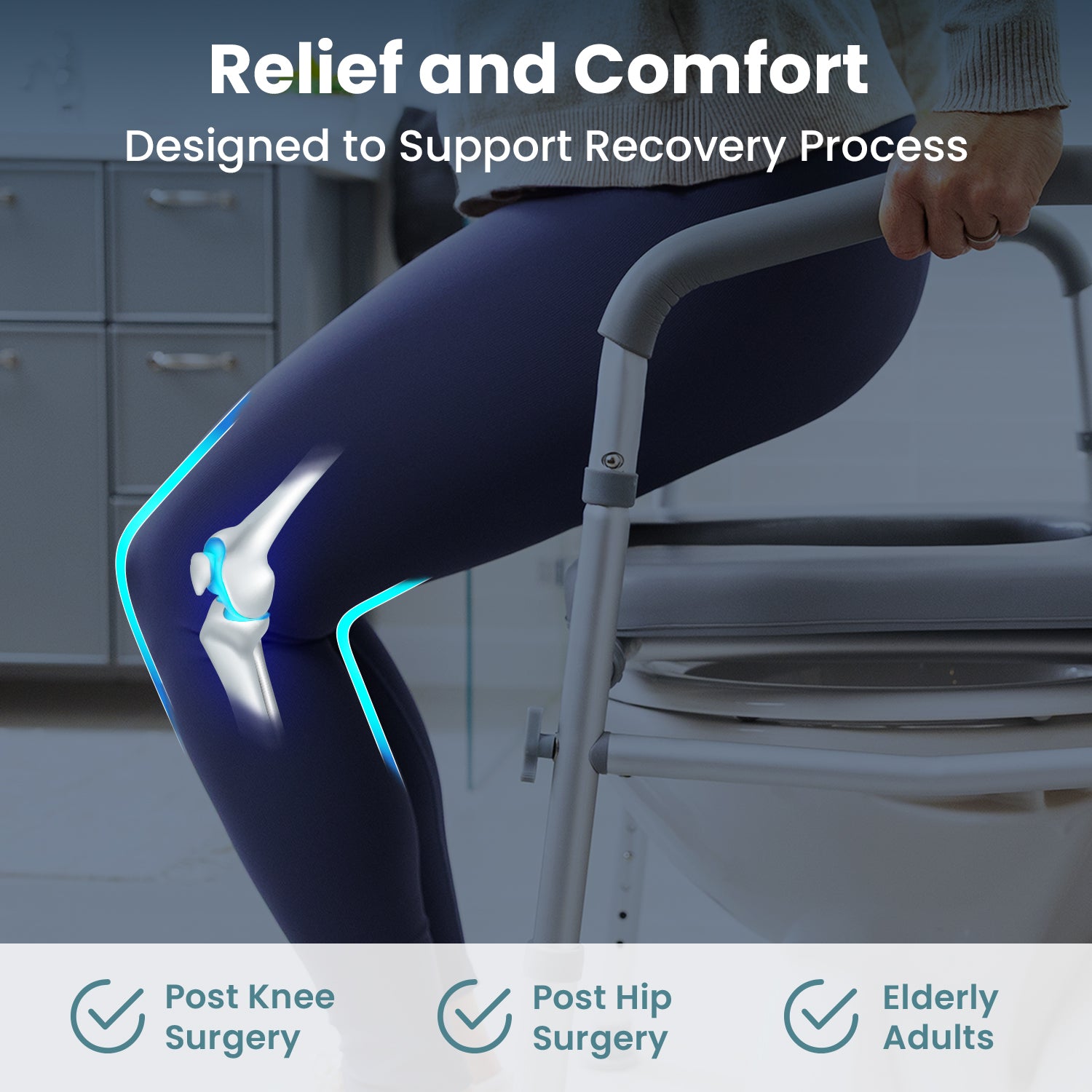 It can be used as a raised toilet seat, a toilet safety rail, and a bedside commode.